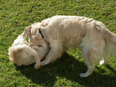 But mum said there is something called “pack order” (in our games I always manage to knock the young one over, and so far he’s only done that once to me so at the moment I'm claiming I'm at the top of the pack), but Enzo is almost eight months old and is getting more and more male hormones as he is still a full dog (whereas I was taken to my nice vet just after my first birthday for what I thought would be a fun visit!) so mum wonders if there is anything that she should consider or do differently when we play so that our play remains fun and we stay friends.